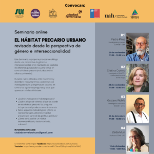 Este Seminario se propone provocar un diálogo desde una perspectiva de género e interseccionalidad entre realidades de ciudades de diferentes países sobre cuatro temas en torno al hábitat precario (incluidos ámbito urbano y viviendas).
